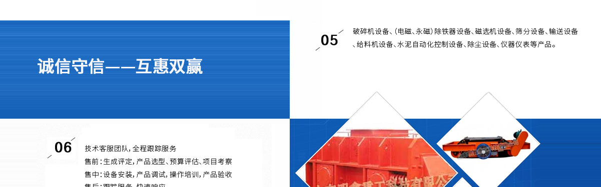 山東明鑫重工科技有限公司為是集科研開發(fā),設計制造、銷售、安裝、調試為一體的技術制造企業(yè)。公司位于美麗的****風箏都-濰坊市(國家AAAA級森林公園-沂山景區(qū)駐地)臨朐東城工業(yè)園。本公司產品種類有:破碎機設備,(電磁、永磁)除鐵器設備,磁選機設備,篩分設備,輸送設備,給料機設備,水泥自動化控制設備、除塵設備,儀器儀表等產品。其產品有五十多個系列,四百多種規(guī)格,并可根據客戶需求設計生產相應的產品。其產品廣泛應用于冶金、電力、煤炭、礦山、造紙、食品、化工建材、耐火材料、磚瓦、水泥、玻璃等行業(yè),產品暢銷國內三十多個省市、自治區(qū)。